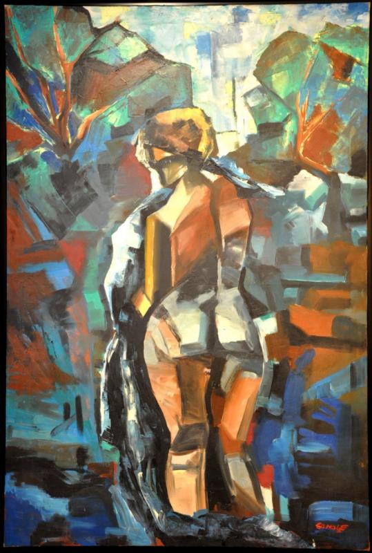 SERGE SAUVAGE BAIGNEUSE HUILE SUR TOILE XXème SIECLE